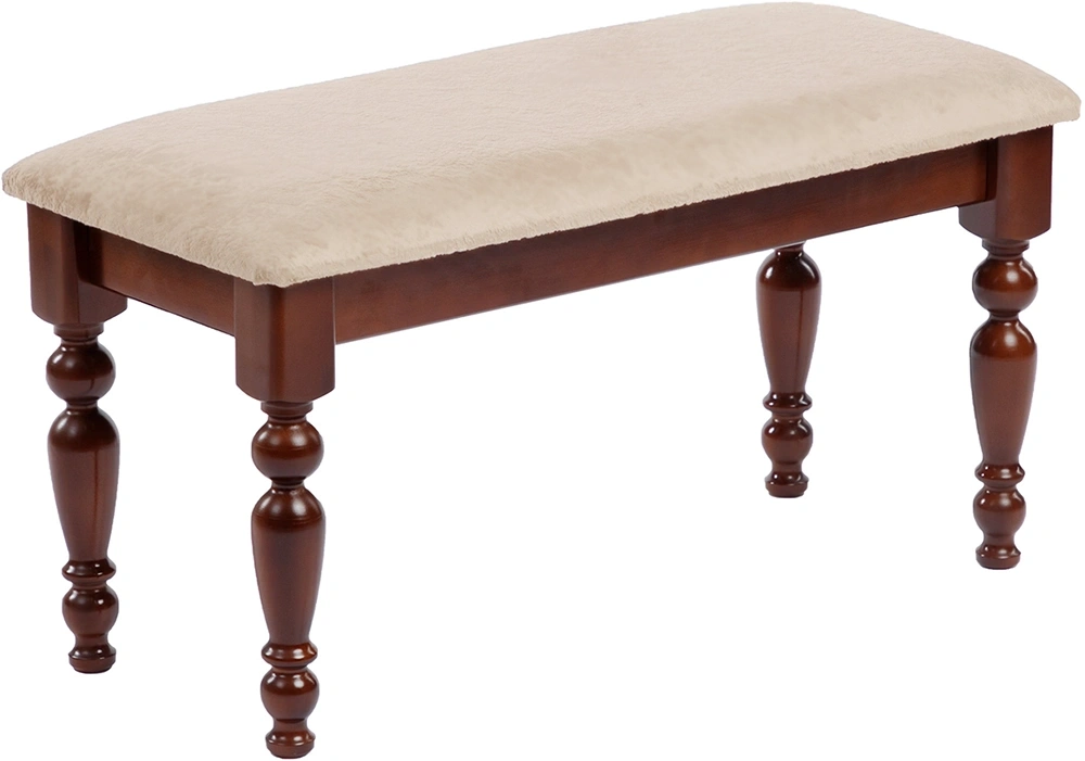 Банкетка выполнена из качественных материалов и имеет прочный каркас. Она также может быть изготовлена как в светлом (белый полупрозрачный лак), так и темном (орех темный) цвете, что позволяет подобрать ее под любой интерьер.