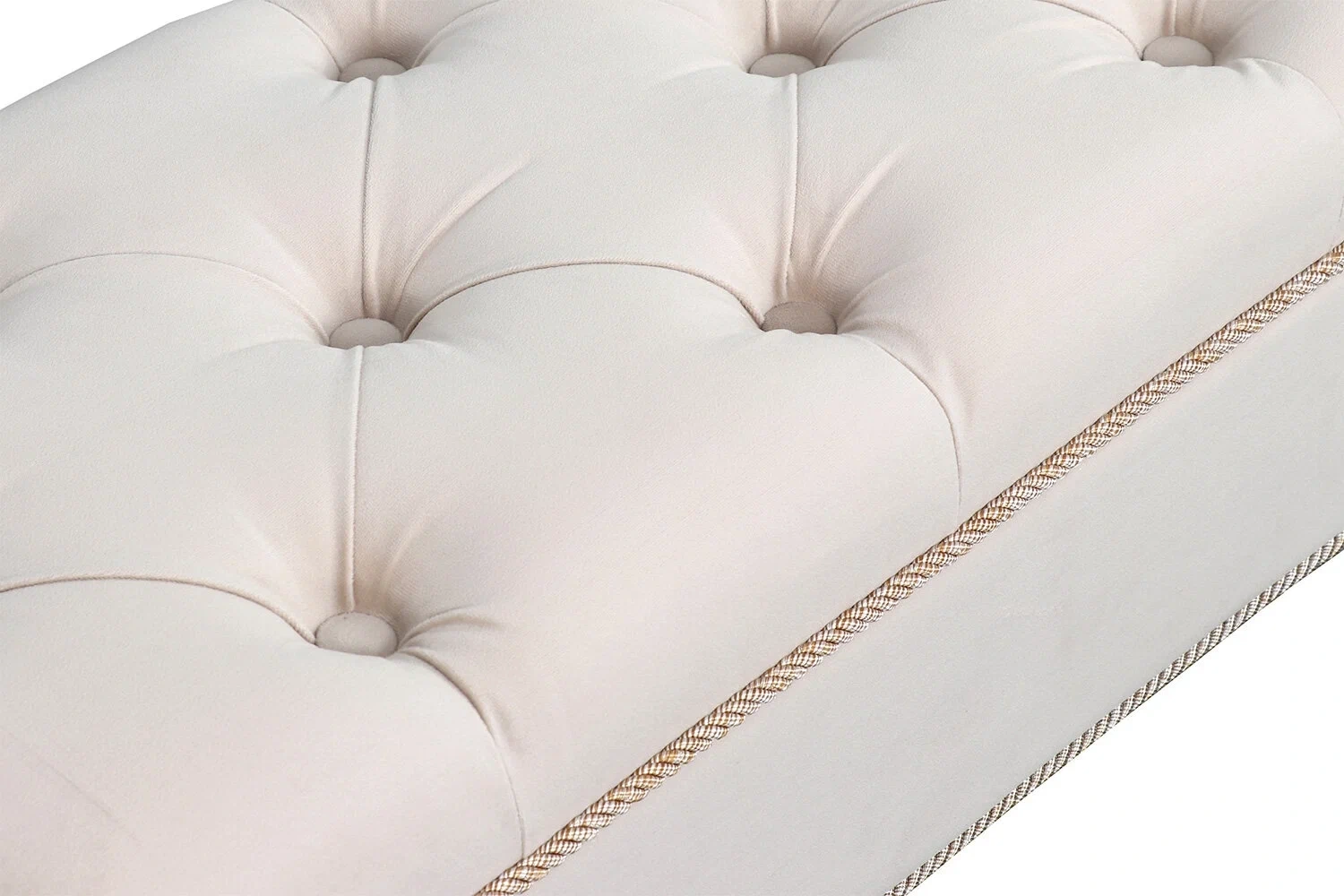Каретная стяжка на высококачественном велюре, декоративные канты, опоры "кабриоль" из натуральной древесины (береза) сделают банкетку №15 изюминкой Вашего интерьера.