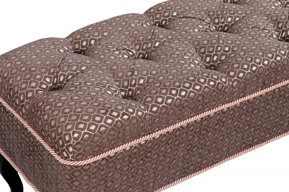 Каретная стяжка на высококачественной ткани, декоративные канты, опоры "кабриоль" из натуральной древесины (береза) сделают банкетку №15 изюминкой Вашего интерьера.