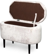 Мягкая обивка в ткани велюр с краш-эффектом добавляет приятный объем и украшает изделие. Опоры выполнены из массива берёзы и имеют защитные войлочные наклейки. Банкетка хороша не только в гостиной, но и в спальне, на кухне и в детской комнате. Максимальная нагрузка 100 кг.