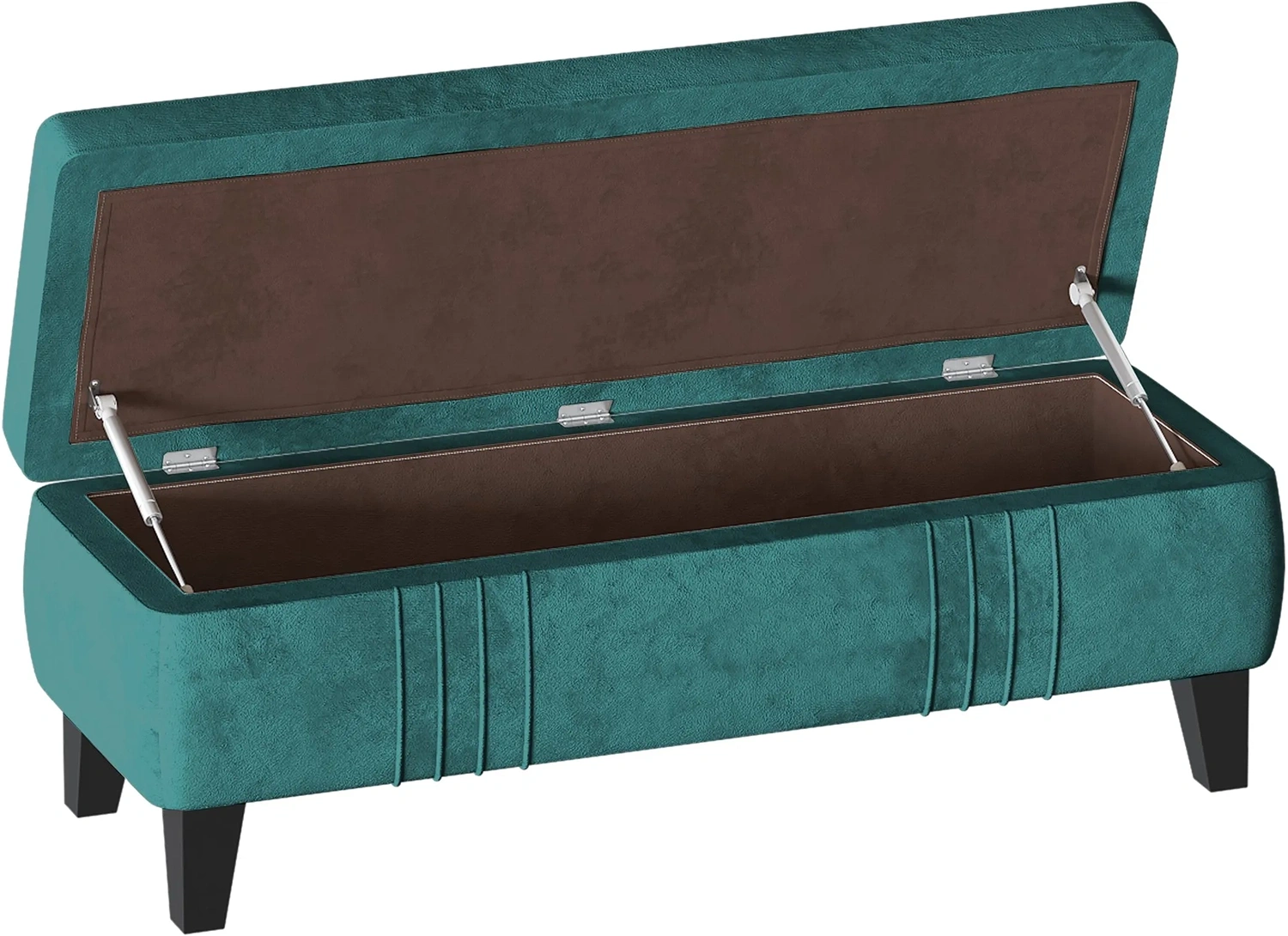 Декоративная отстрочка по высококачественному велюру добавляет приятный объем и украшает изделие. Опоры выполнены из массива берёзы, покрыты прозрачным лаком и имеют защитные войлочные наклейки. Банкетка хороша не только в спальне, но и в гостиной, на кухне и в детской комнате. Максимальная нагрузка 110 кг.