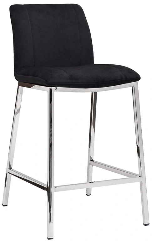 Стильный барный черный стул станет эффектным дополнением барной стойки и привнесет в обстановку нотку современной роскоши. Он прекрасно подойдет для просторной кухни, студии с открытой планировкой, комнаты отдыха. Велюровые барные стулья заметно отличаются от классических моделей за счет своей роскошной обивки. Высокие ножки, устойчивый прочный каркас, удобная стальная ступенька – все эти конструктивные особенности обеспечивают повышенный комфорт. Высокие барные стулья с металлическими ножками универсальны в интерьерном плане – они органично вписываются в стилистику ар-деко, классика, минимализм, лофт, модерн. Габариты сиденья: ширина 42см, глубина 38см, высота от пола 65см