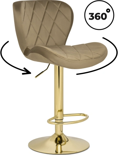 Барный стул Porch dark beige / golden - это изысканный и комфортный выбор для вашего домашнего бара. Ножка стула выполнена из гальванизированного металла, окрашенного в цвет золота, который придает стулу элегантный и изысканный вид. Сиденье с низкой спинкой выполнено из мелковорсистого велюра, который не только выглядит элегантно, но и приятен на ощупь. Высота стула регулируется, что позволяет настроить его под любой барный стол, а возможность вращения обеспечивает максимальный комфорт при использовании. Удобная подножка для ног позволит вам расслабиться и насладиться атмосферой вашего домашнего бара в полной мере. Стильный и функциональный, стул Porch - идеальный выбор для создания уютной и роскошной обстановки в вашем доме.