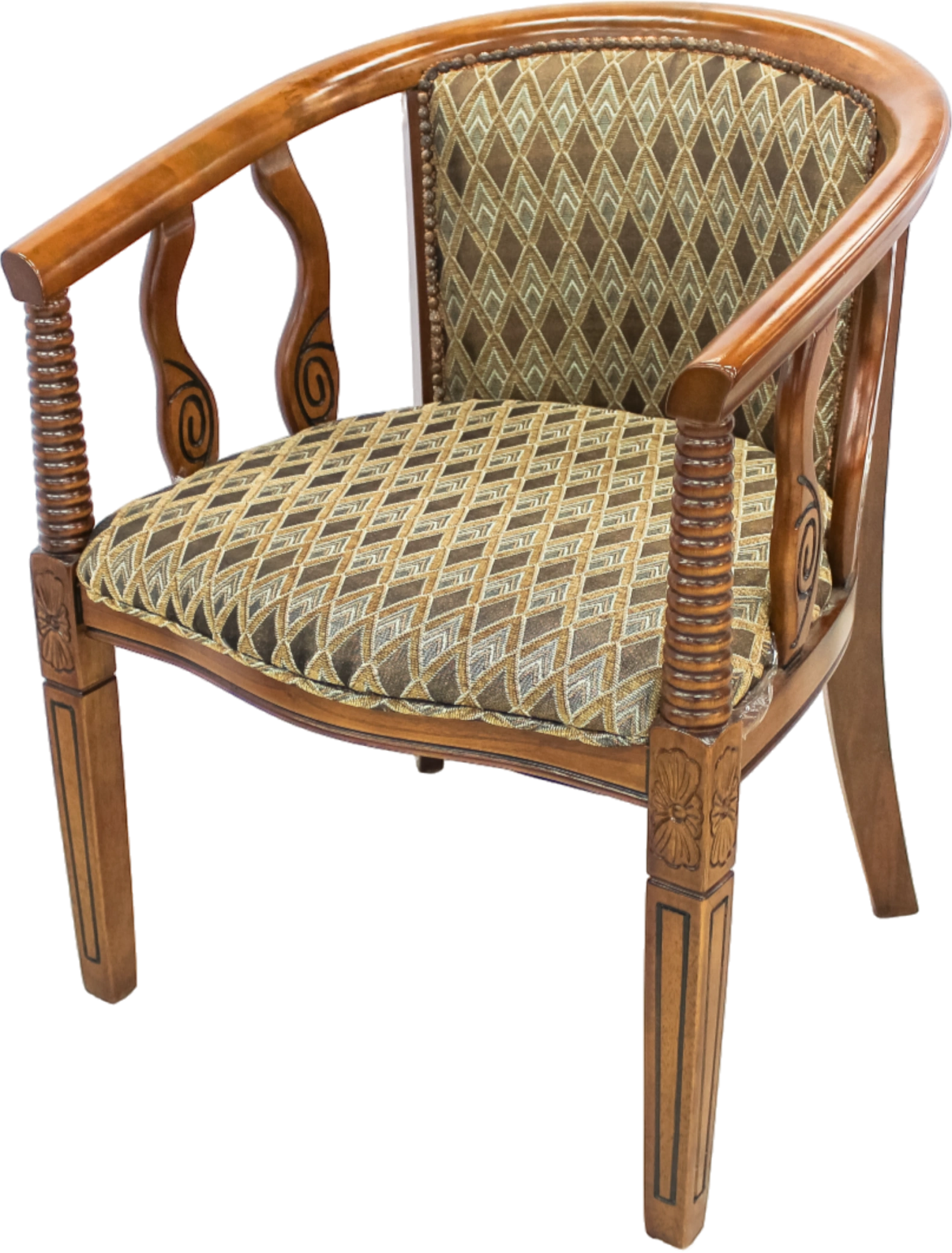 Комфортное кресло неоклассическом стиле выполненное из твердых лиственных пород древесины. Материал-массив гевеи. Обивка тканевая с дизайном в полоску бежевого цвета. Тип ткани шеннил. Цвет деревянного каркаса - орех. Высота сидения кресла от пола 42 см. Поставляется в собранном виде, упакован в жесткую картонную упаковку. Производство Китай. Кресла поставляются в собранном виде, дополнительная сборка не требуется.