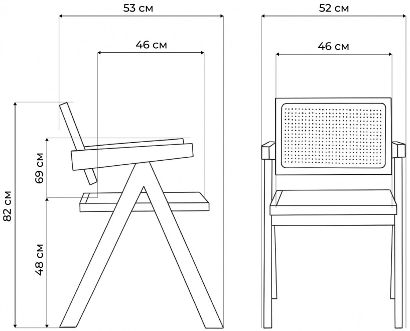 ✔ Эргономичные подлокотники – высота 69 см позволяет задвигать стул под стандартный стол