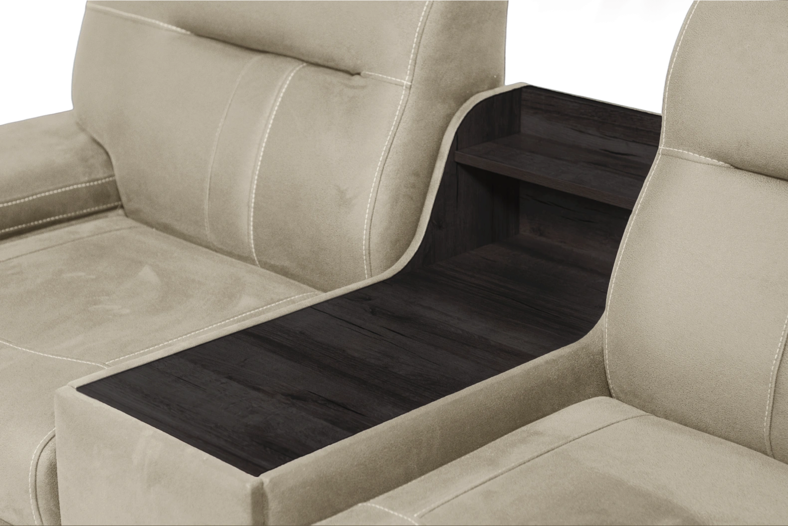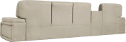 Его можно заказывать в разной комплектации: с креслом как на правую так и на левую сторону, так же и в прямом варианте как отдельно стоящий диван без модуля - боковое кресло, например, в комплекте с отдельно стоящим креслом по желанию клиента. За счет приставного пуфа диван может трансформироваться в угловой. Плавное и мягкое открытие механизма обеспечат каучуковые колесики.
