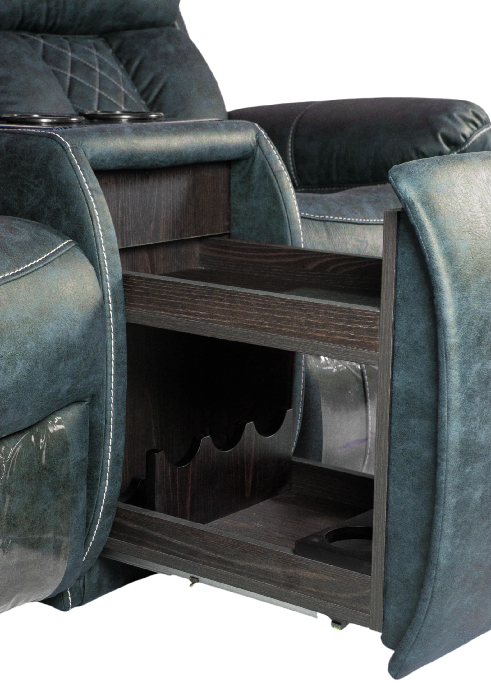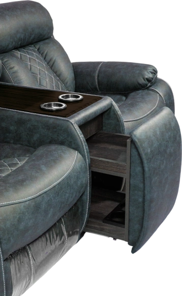 Модель оснащена встроенными элементами для комфортного отдыха: удобными подстаканниками и функциональным баром для хранения напитков и аксессуаров. Контрастная декоративная отстрочка подчёркивает форму дивана и добавляет ему аккуратный, современный характер, делая дизайн завершённым и продуманным.
