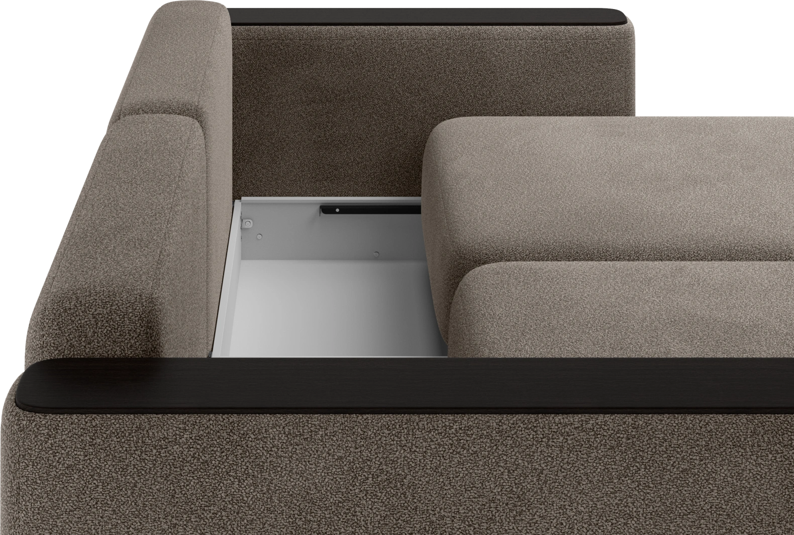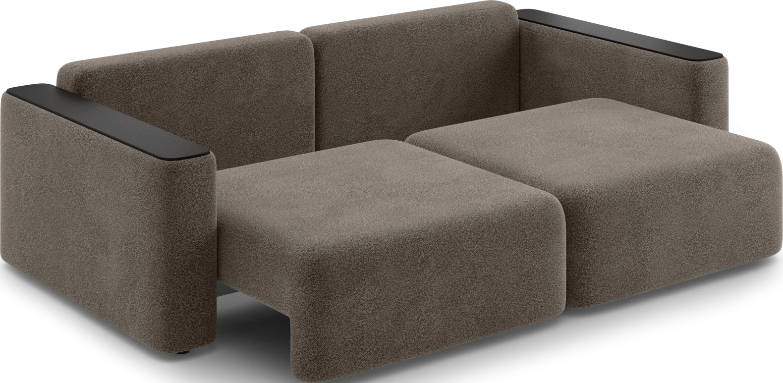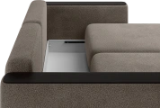 Спинка представлена объемными подушками, наполненными смесью из крошки и шарикового волокна (60%/40%) — они сохраняют форму и дарят мягкость.