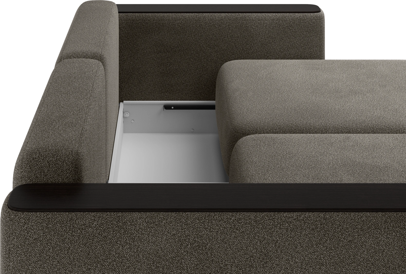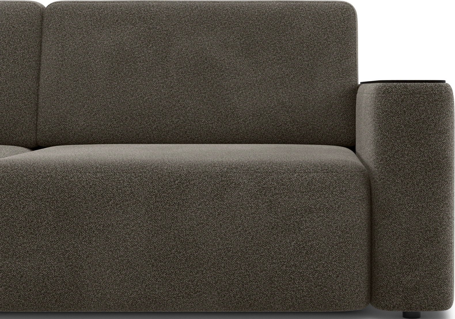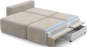 Спинка представлена объемными подушками, наполненными смесью из крошки и шарикового волокна (60%/40%) — они сохраняют форму и дарят мягкость.