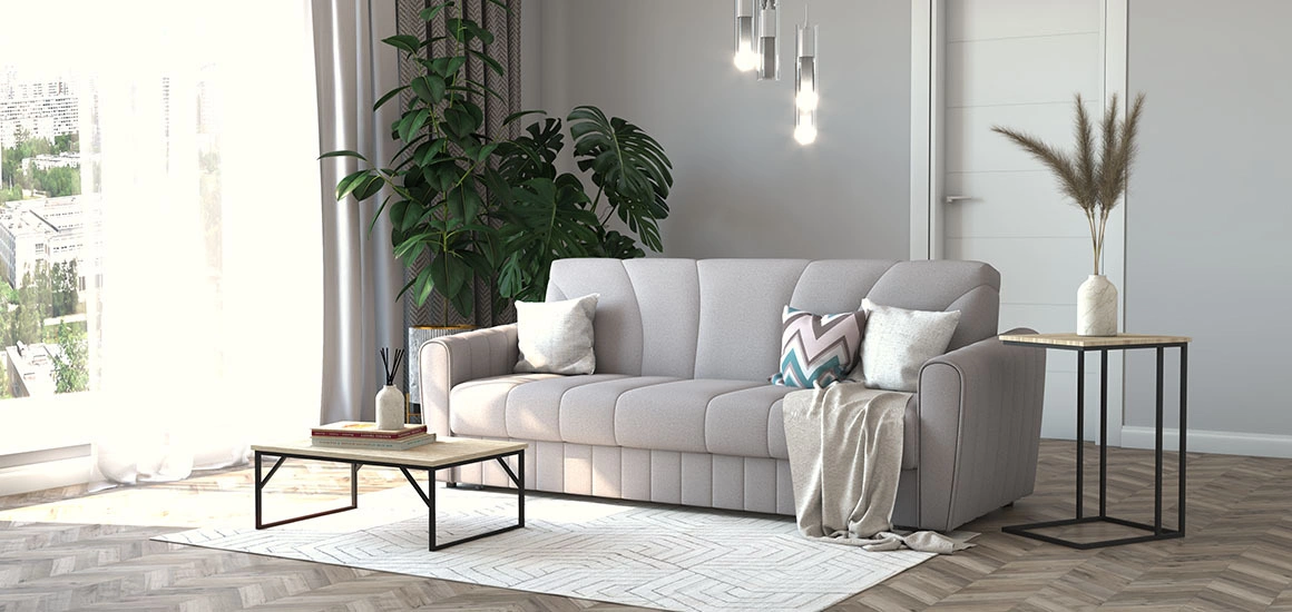 Диван Эльзас - уникальная разработка конструкторов Rivalli. Механизм трансформации клик-кляк простой и надежный позволяет не отодвигать диван от стены при трансформации.