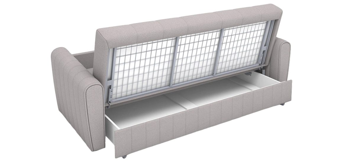 Бесшумных колесиков из каучука, которые не портят напольное покрытие и позволяют легко и просто раскладывать диван с любой фронтальной точки сидения.