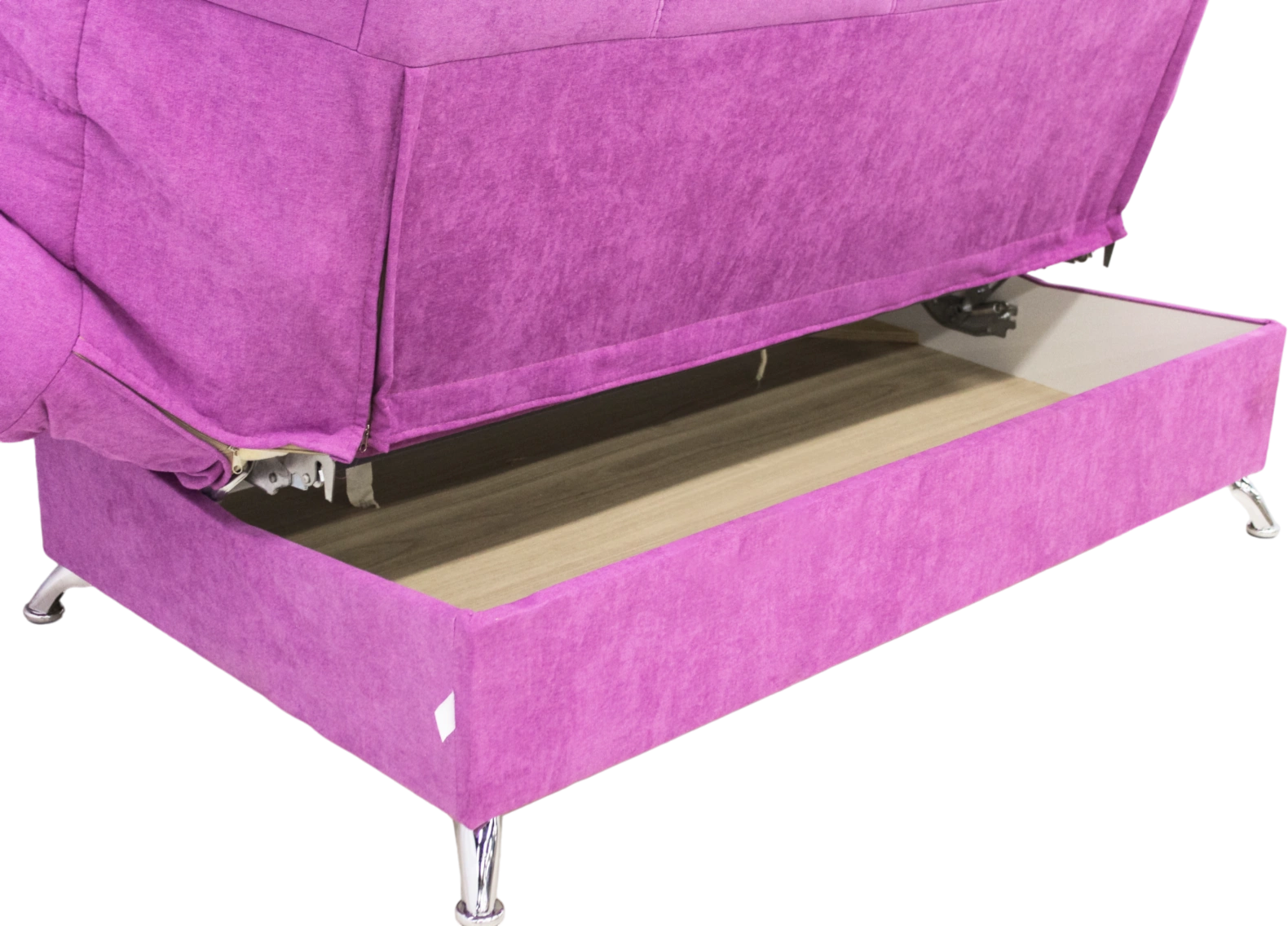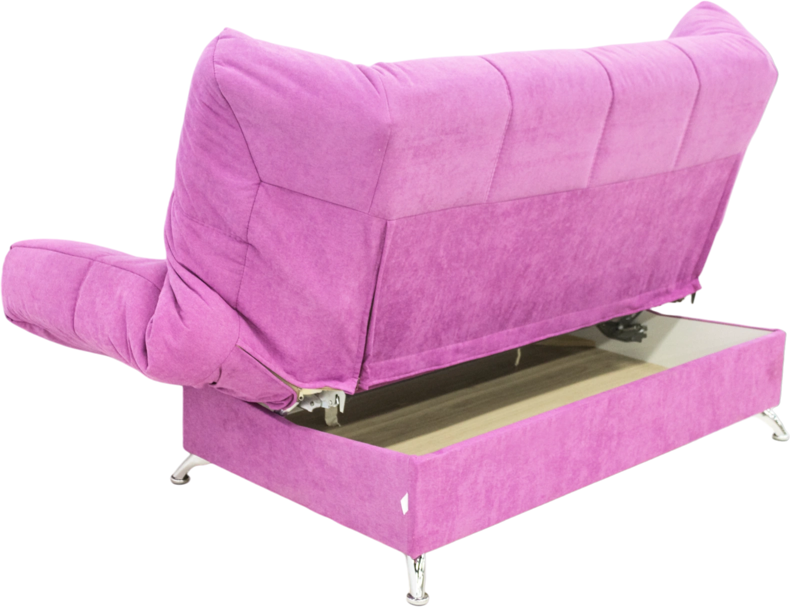 Легкий вес Клик-Кляка позволяет передвинуть диван даже ребенку. В акцентном цвете Фуксия диван станет украшением комнаты. Если нужно увеличить посадочное место, подлокотники выпрямляются вровень с сиденьем.