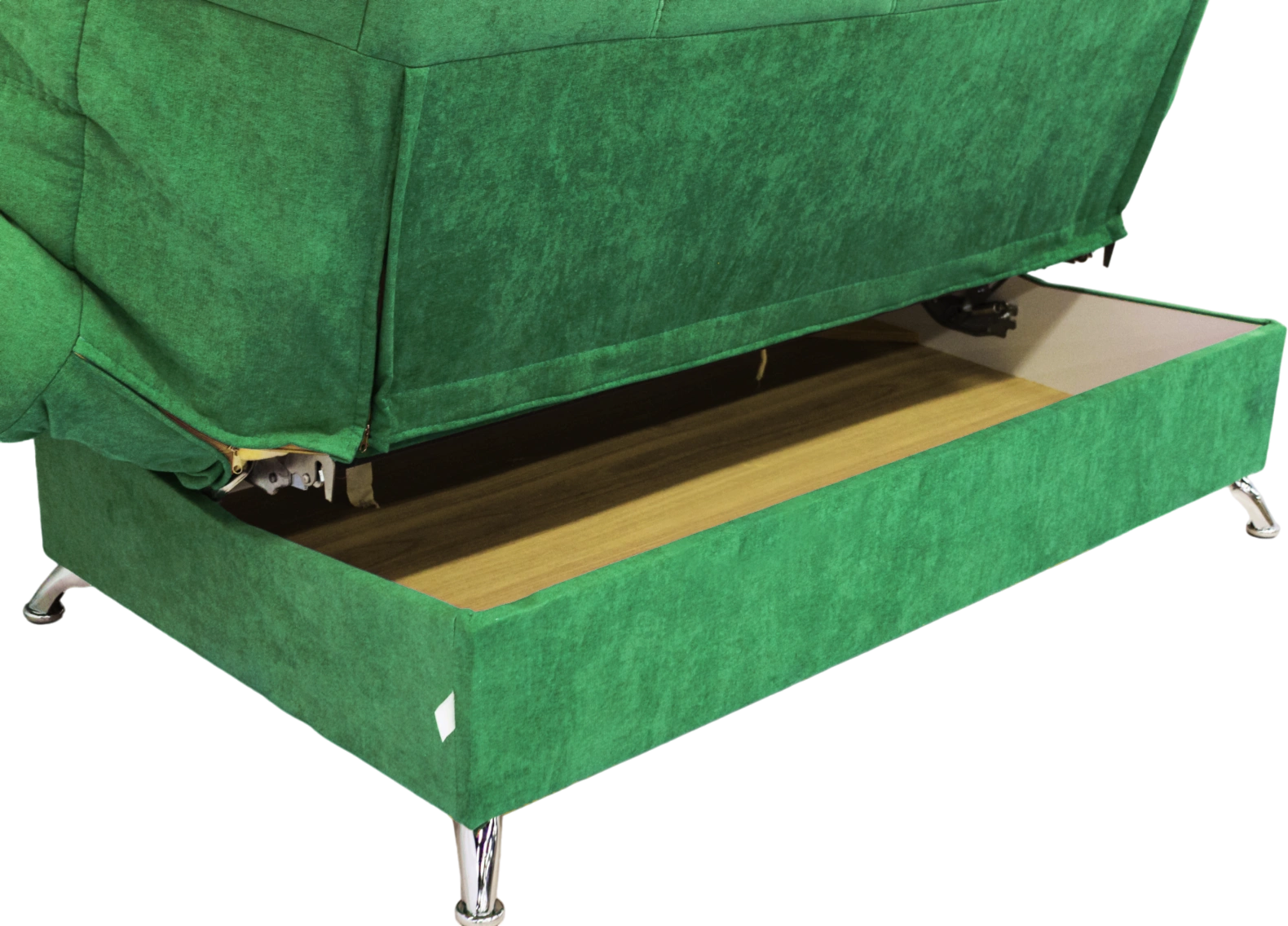 Легкий вес Клик-Кляка позволяет передвинуть диван даже ребенку. В акцентном цвете диван станет украшением комнаты. Если нужно увеличить посадочное место, подлокотники выпрямляются вровень с сиденьем.