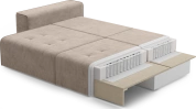 Спинка представлена подушками с наполнением из смеси крошки и шарикового волокна (60/40), которые хорошо держат форму и создают уютную поддержку.