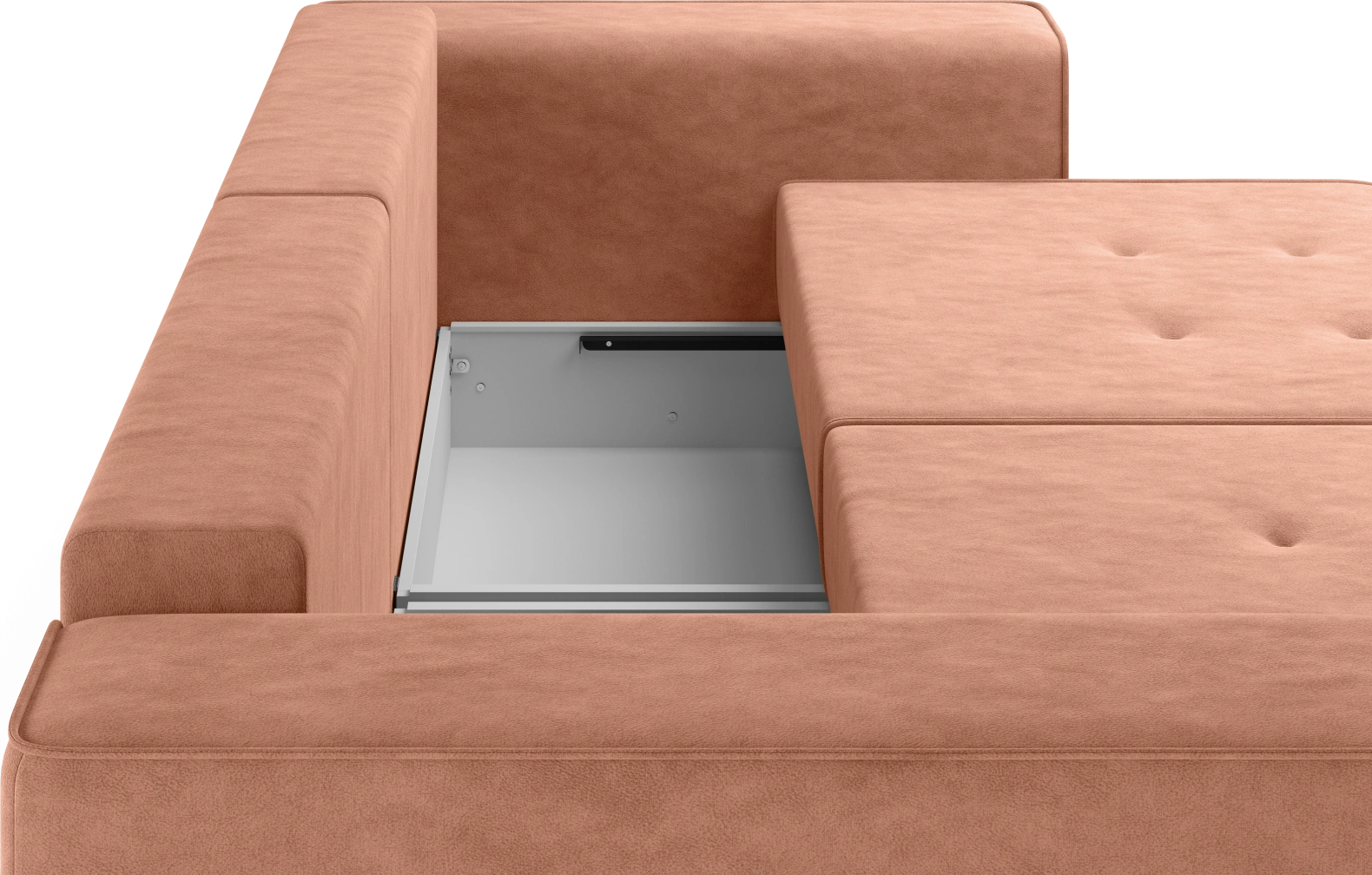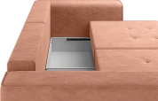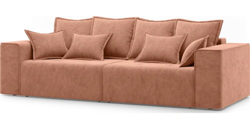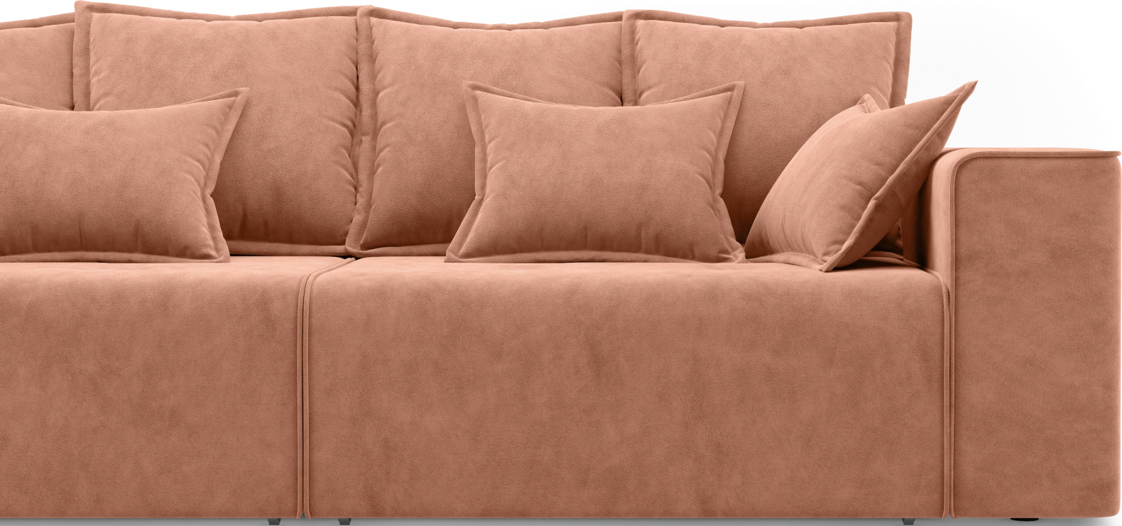 Спинка представлена подушками с наполнением из смеси крошки и шарикового волокна (60/40), которые хорошо держат форму и создают уютную поддержку.