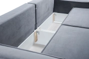 Независимый пружинный блок и большое спальное место позволяют использовать диван для ежедневного сна. Оттоманка выдвигается вперед и делает диван Лортон угловым, что очень удобно для творческих перестановок в квартире, тем более. Задняя часть выполнена в основной ткани и диван может смотреться выгодно с любой стороны.