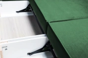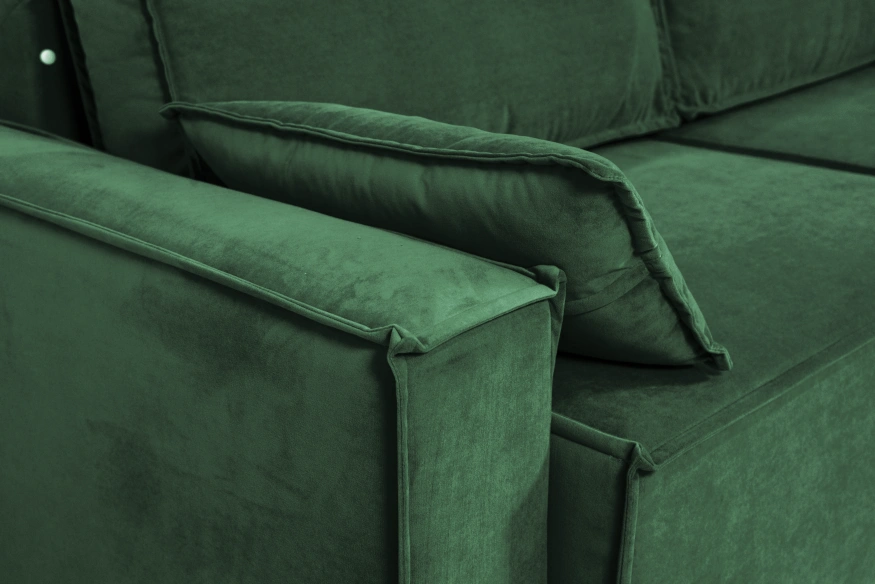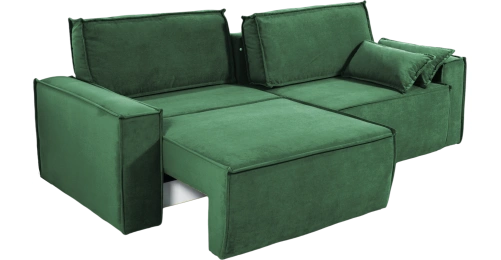Независимый пружинный блок и большое спальное место позволяют использовать диван для ежедневного сна. Оттоманка выдвигается вперед и делает диван Лортон угловым, что очень удобно для творческих перестановок в квартире, тем более. Задняя часть выполнена в основной ткани и диван может смотреться выгодно с любой стороны.