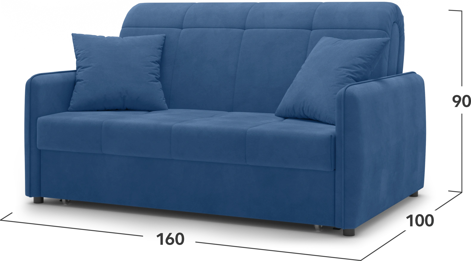 - Оптимальные размеры – 160 × 95 × 100 см, что позволяет сохранить баланс между компактностью и комфортом.