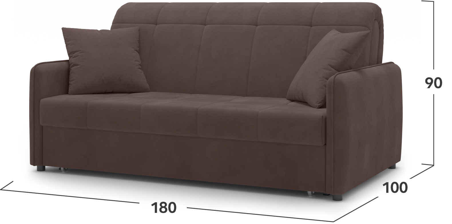 - Оптимальные размеры – 180 × 95 × 100 см, что позволяет сохранить баланс между компактностью и комфортом.