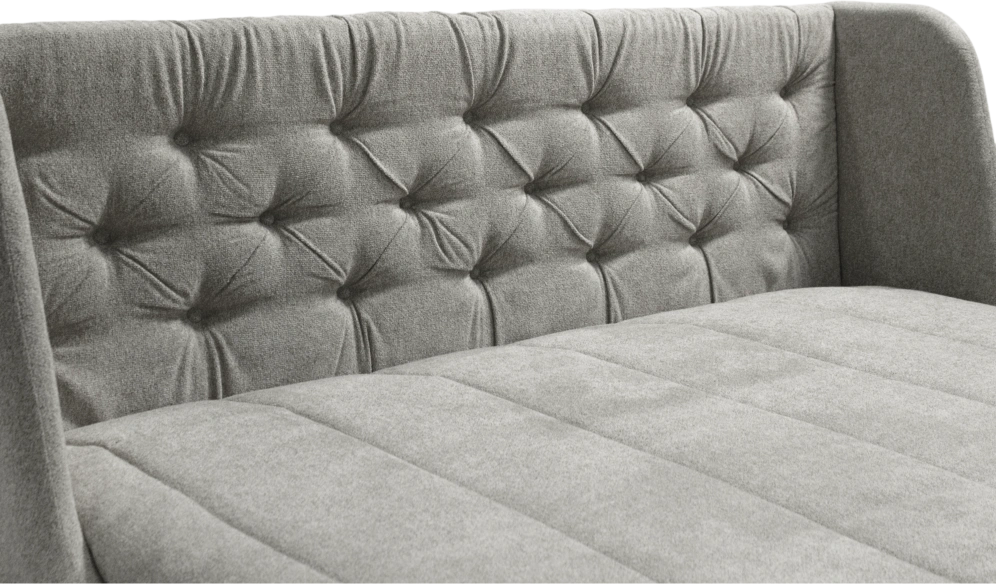 Диван-кровать Ричмонд на базе механизма трансформации аккордеон - стильный и уютный вариант для оформления современного и классического дизайна интерьера. За счет декоративных утяжек на высокой спинке диван в разложенном виде выглядит как элегантная кровать. Скругленные углы узких подлокотников делают его безопасным.