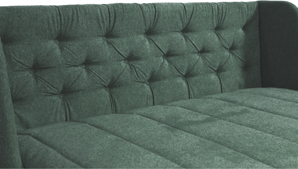 Диван-кровать Ричмонд на базе механизма трансформации аккордеон - стильный и уютный вариант для оформления современного и классического дизайна интерьера. За счет декоративных утяжек на высокой спинке диван в разложенном виде выглядит как элегантная кровать. Скругленные углы узких подлокотников делают его безопасным.