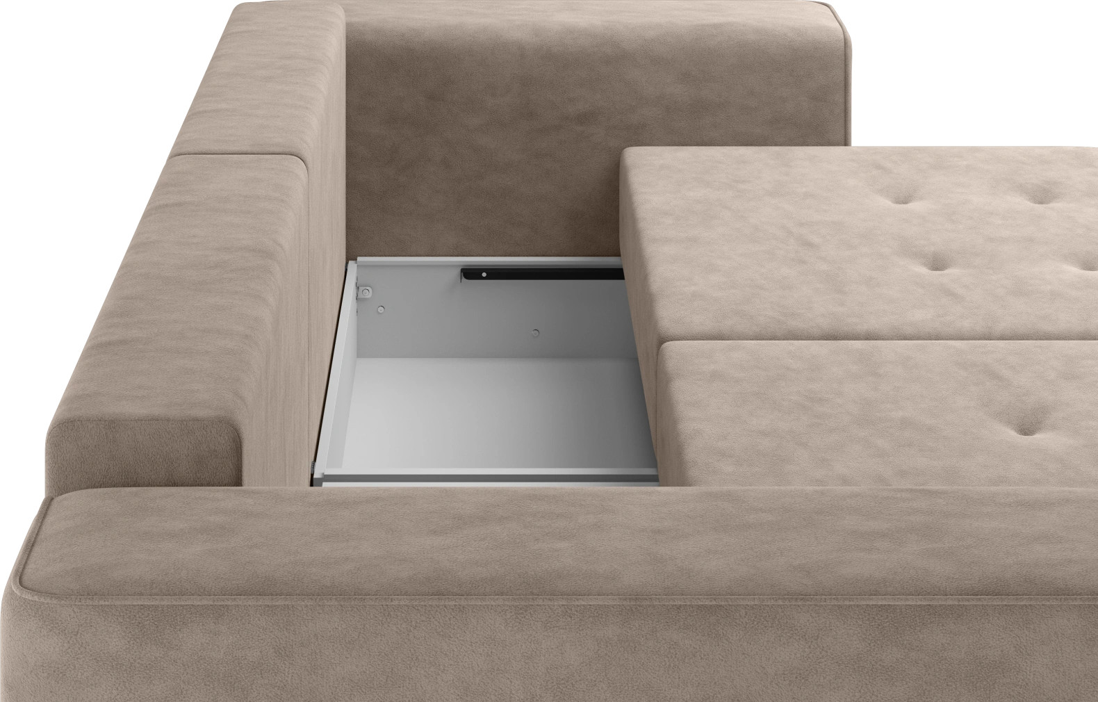 Спинка оснащена подушками, наполненными смесью крошки и шарикового волокна (60% крошка / 40% шар 15D64) — они хорошо держат форму и дарят ощущение мягкости.