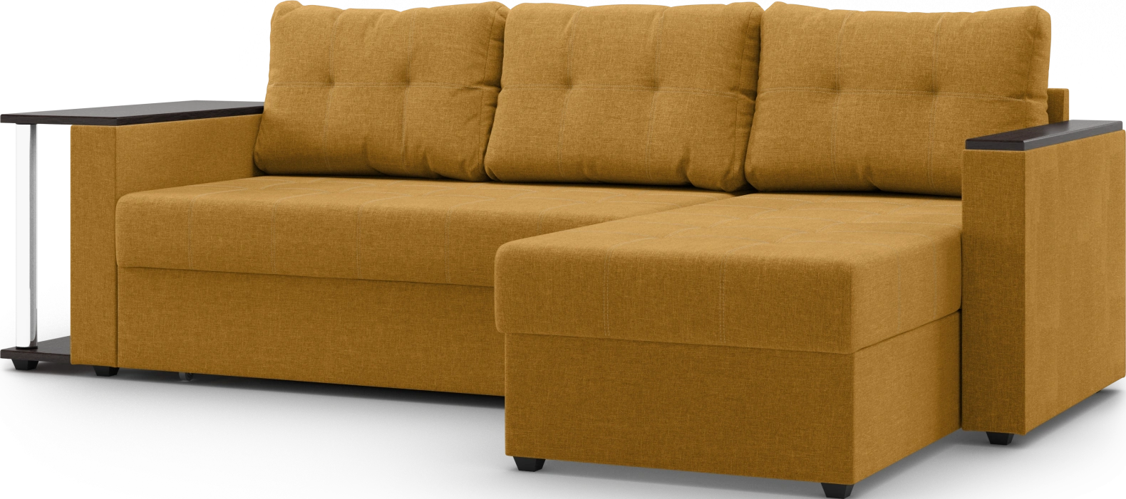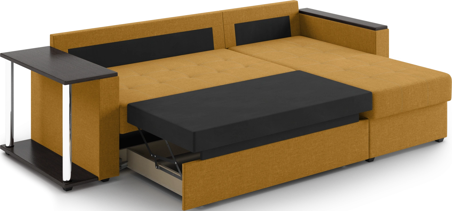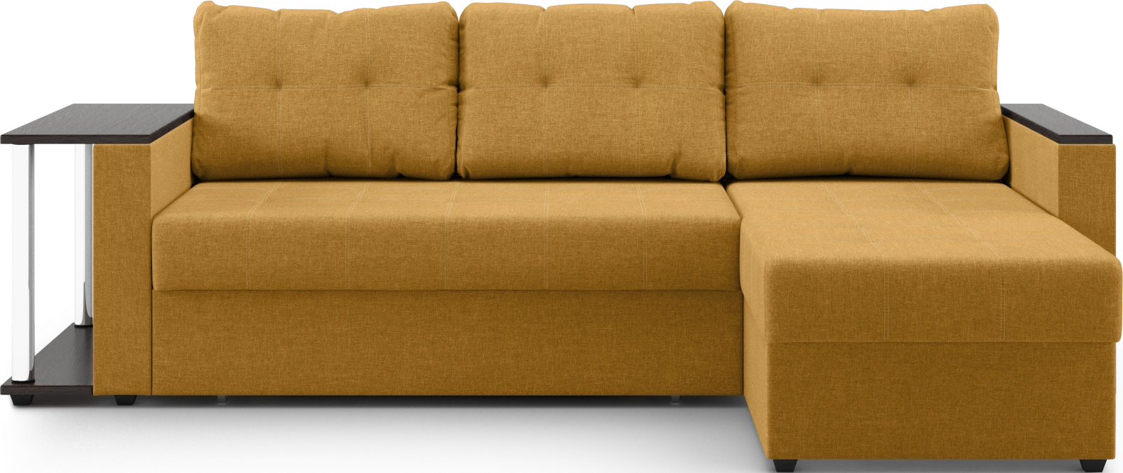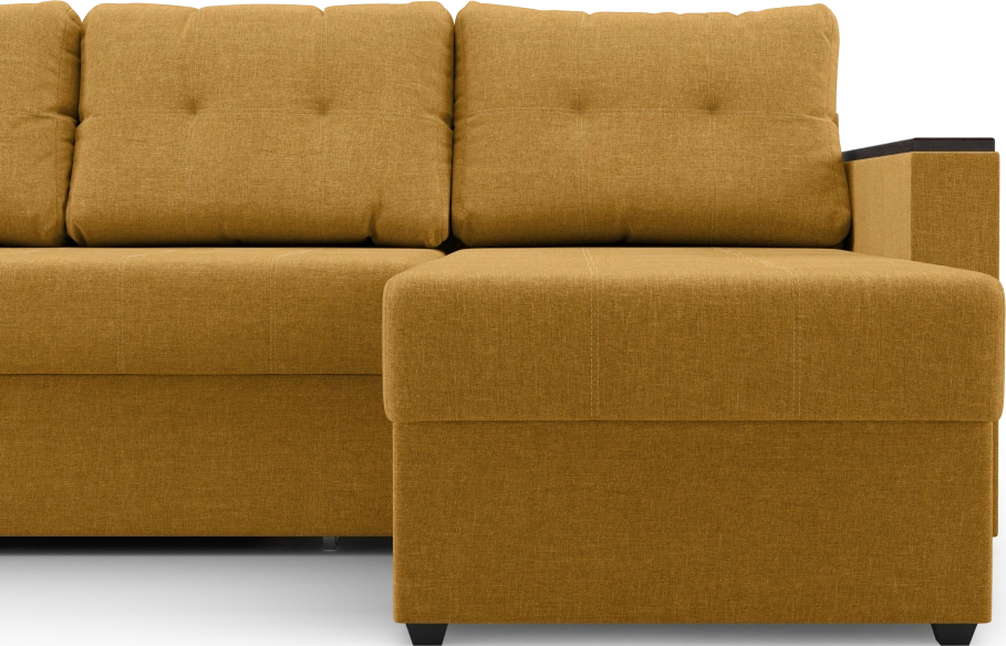 Диван угловой Атланта, модель 110, Savana Plus yellow (соломенный) / венге - гармонично сочетает в себе стиль и функциональность, делая интерьер гостиной уютным и современным. Надежный механизм трансформации "Дельфин", рассчитанный на регулярное использование и высокие нагрузки, позволяет с легкостью превратить диван в просторное спальное место.
