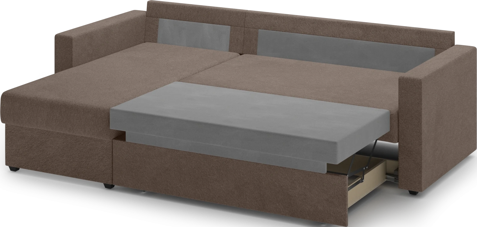 Диван угловой Фишер (модель 113, ткань Nola 35, коричневый) — это решение для тех, кто выбирает не просто диван, а удобную зону отдыха с запасом пространства.