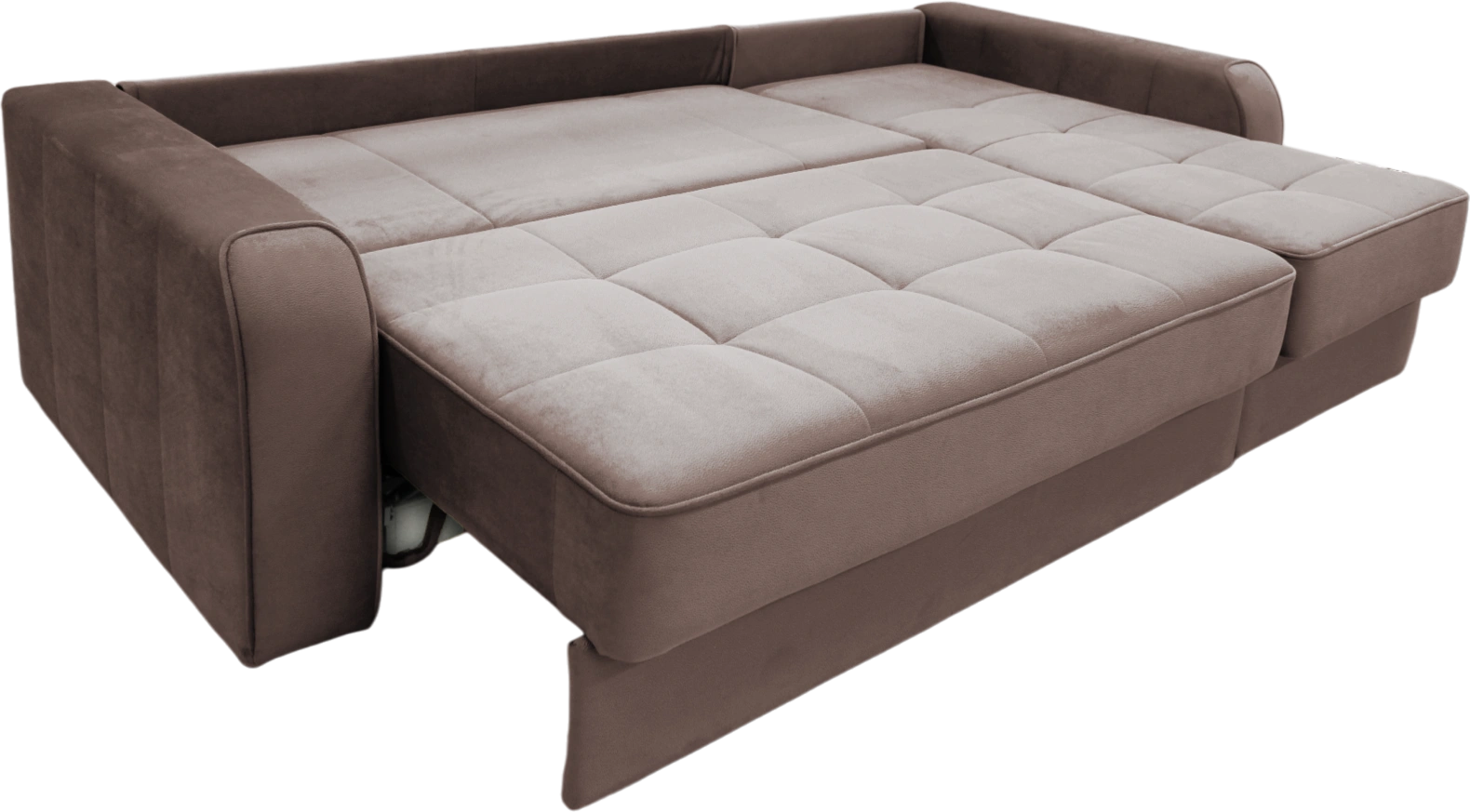 Шагающий механизм трансформации пантограф прост и надежен; при раскладывании не портит напольное покрытие. Модель также оборудована двумя вместительными бельевыми ящиками: в диване и оттоманке.