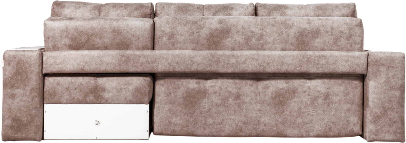 Диван угловой Остин, ткань Tornado chocolate, угол правый, декор Рамух белый100 см269 см