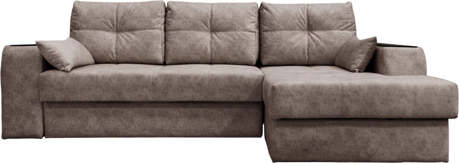 Серия диванов Остин включает как угловые, так и прямые диваны. Угловой диван с оттоманкой Остин поставляется стандартно с правым углом. Однако на заказ можно выполнить с левым углом. Большие подушки на спинке набиты поролоновой крошкой и и холлофайбером, за счет этого они дают мягкую уютную посадку. 2 маленькие декоративные подушки более жесткие, на холлофайбере, они также входят в комплект. У всех подушек чехлы снимаются для химчистки.