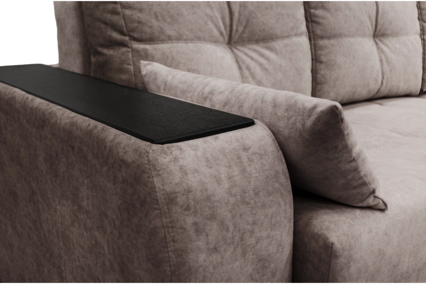 Боковины покрыты термопленкой, которая выдерживат до 60 градусов. На подлокотнике есть выемка для рук, для удобства открывания. Декорированные подлокотники выполнены в цвете Венге. Также производитель предлагает популярные цвета подлокотников для Остина: Орех, Ясень Бланко.