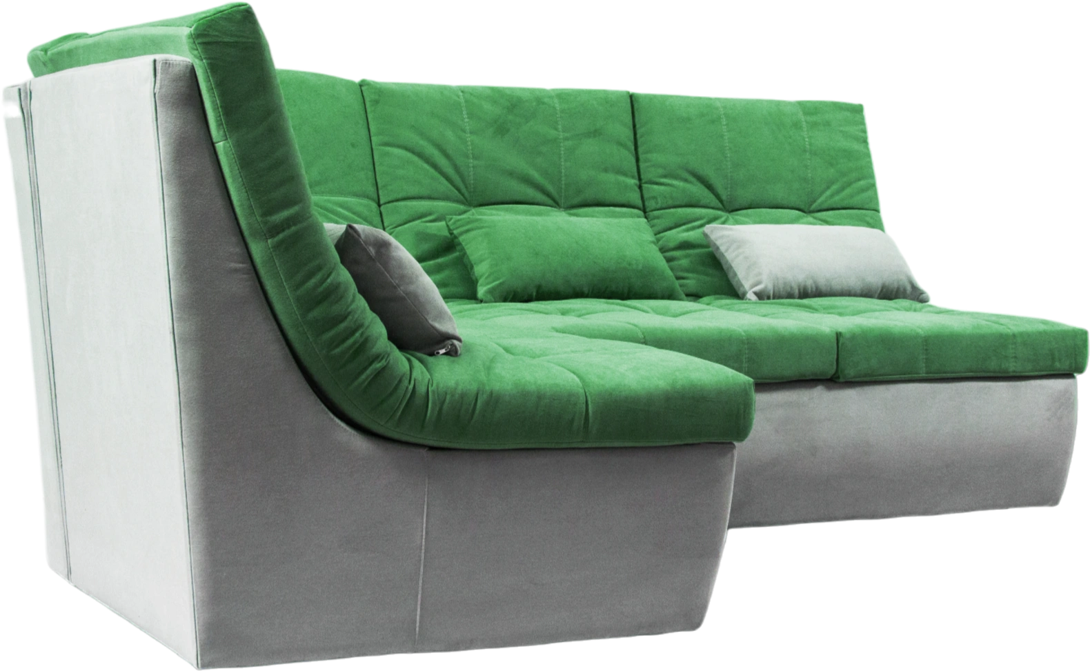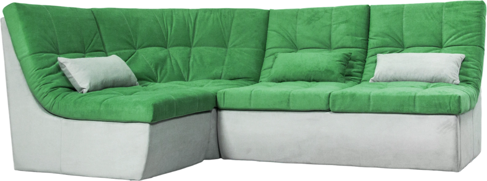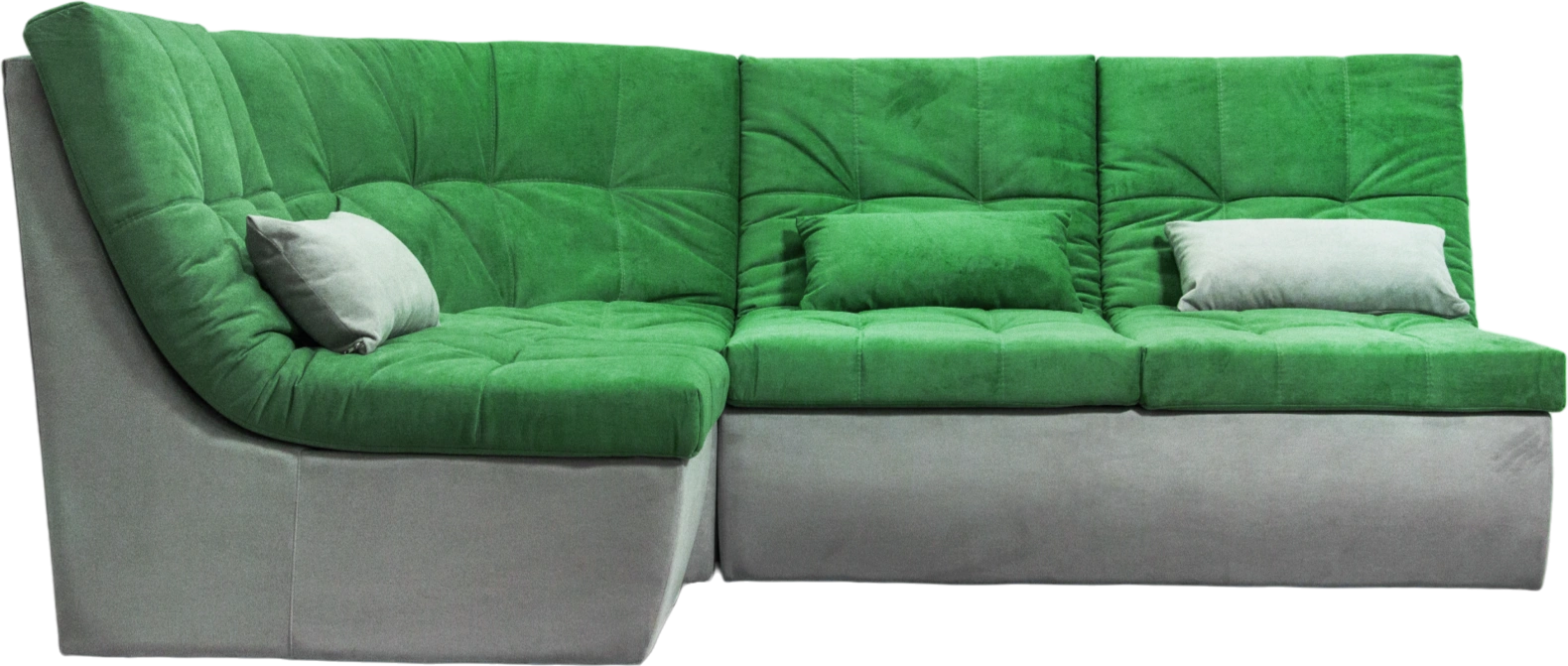 Диван угловой София 2 с кресельной частью, Catania mint, Catania smoke, с задней тканью