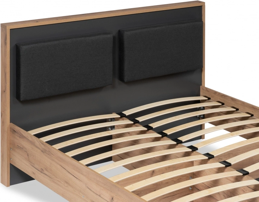 Современная и яркая двуспальная кровать Тхан 180*200, дуб крафт золотой / антрацит