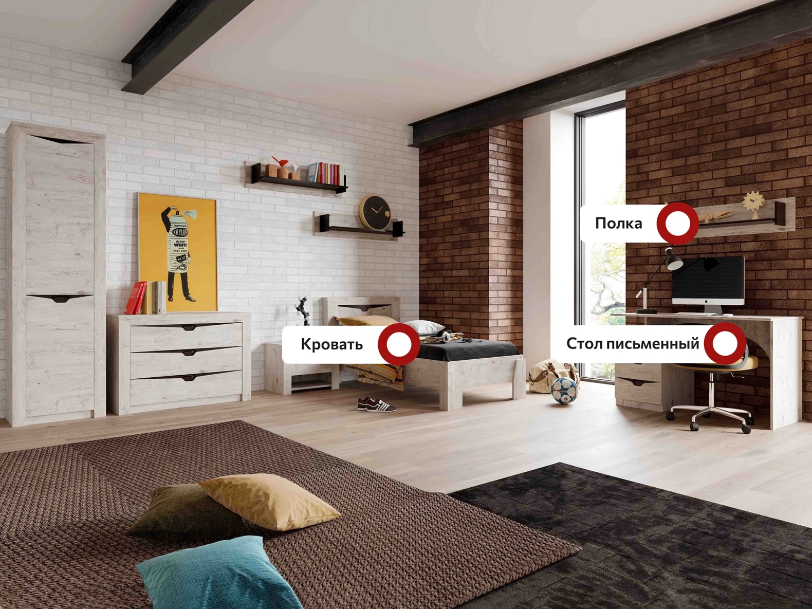 "Соренто" молодёжная — один из примеров идеального сочетания практичности, оригинальности и долговечности. Цветовое исполнение подходит сразу для нескольких стилей, а габариты — для комнат разной площади.