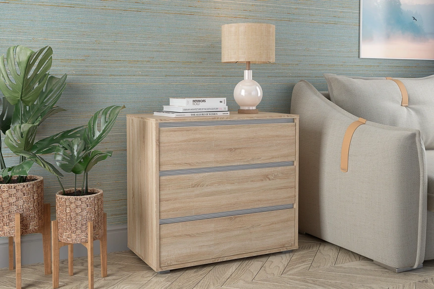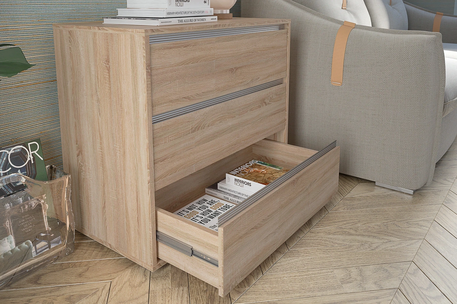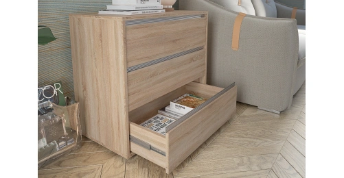 Ящики установлены на шариковые направляющие и выполнены без ручек, открывание осуществляется за скошенную торцевую грань фасада.