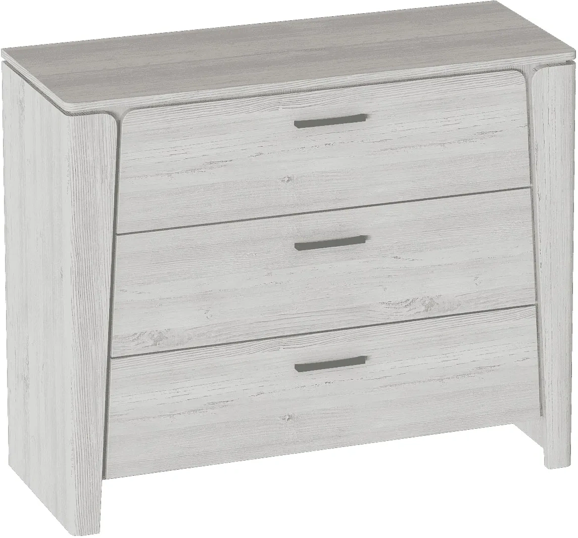 Вместительность комода обеспечивает три выдвижных ящика, которые идеально подходят для хранения одежды, постельного белья и других личных вещей. Каждый ящик оборудован шариковыми направляющими, обеспечивающими плавный и бесшумный ход при использовании. Благодаря этому, вы сможете быстро и без лишних усилий найти нужную вещь и так же легко вернуть ящик на место.