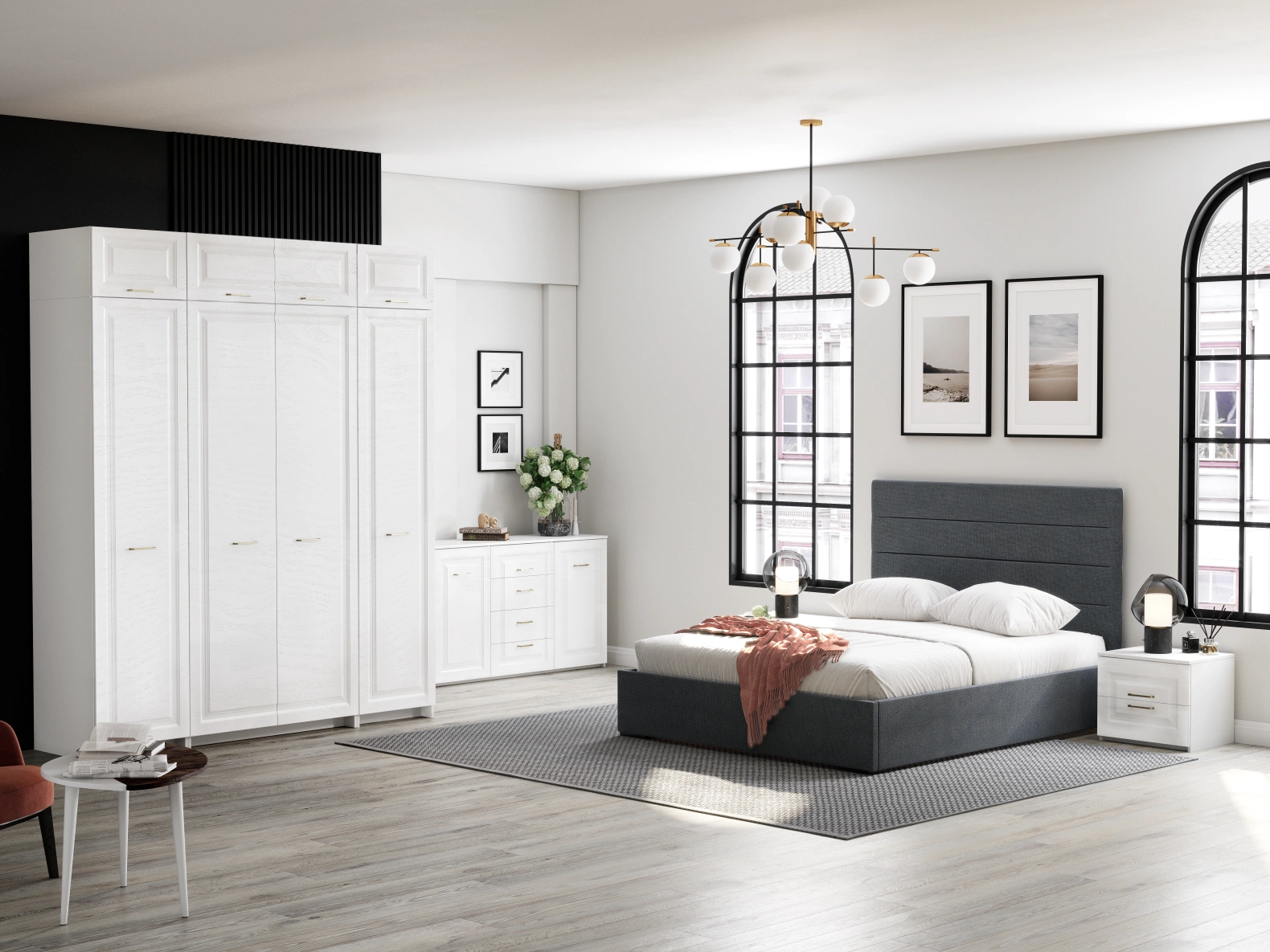 Комод с 4 ящиками 2 двверьми Манхэттен - это прекрасное решение для тех, кто хочет организовать грамотное хранение вещей в своей спальне.