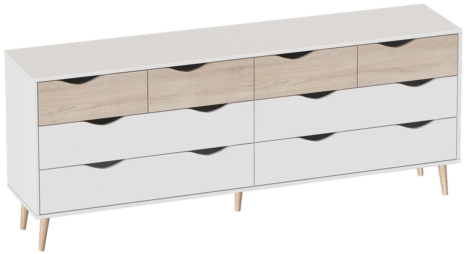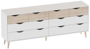 Комод Соната, на ножках, с восьмью ящиками, белый фон / дуб сонома
