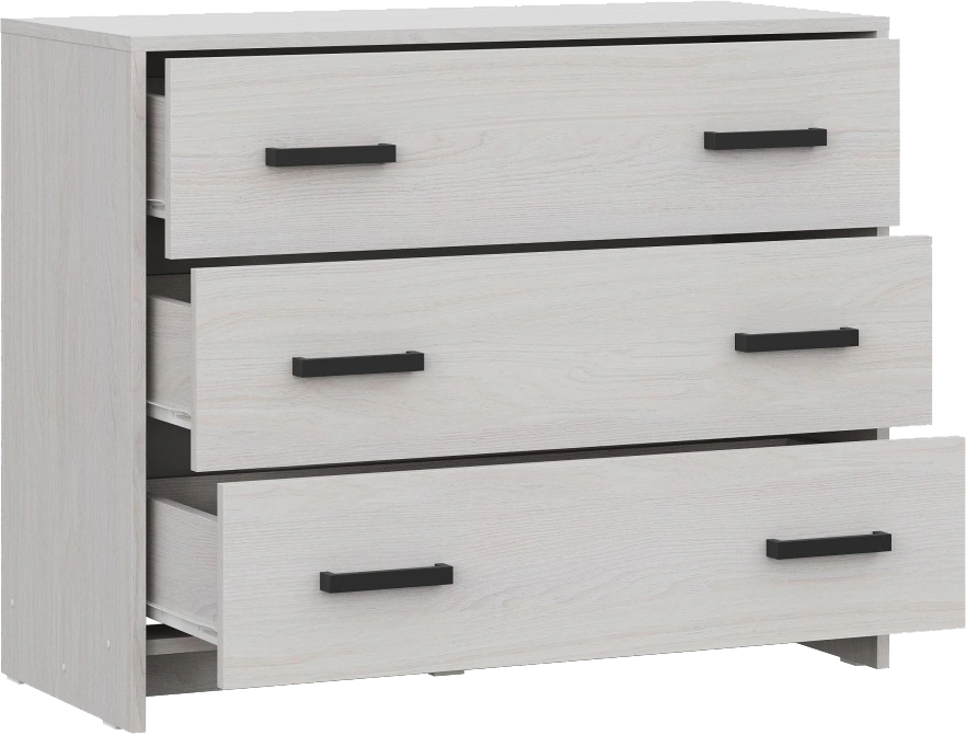 Комод Taika - это отличное решение для тех, кто ищет стильную и функциональную мебель для своего дома. Комод состоит из 3 ящиков, каждый из которых имеет длину 81 см, глубину 32 см и высоту 12 см, что делает его идеальным для хранения различных вещей. Каждый ящик оснащен 2 ручками, что обеспечивает удобство использования и легкий доступ к хранимым вещам. Комод изготовлен из ЛДСП, что делает его легким, прочным и долговечным. Благодаря своей современной и элегантной конструкции, комод Taika легко впишется в любой интерьер и станет прекрасным дополнением к вашей мебели.