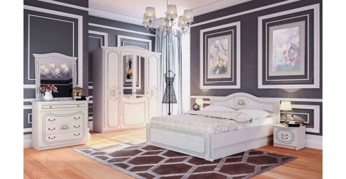 Он отличается роскошным внешним видом и наличием четырех вместительных ящиков. Фасады ящиков декорированы элегантной фрезеровкой с эффектом патины и медальоном, на котором изображены розы. Для удобства использования ящики оснащены темными металлическими ручками, имитирующими ковку.