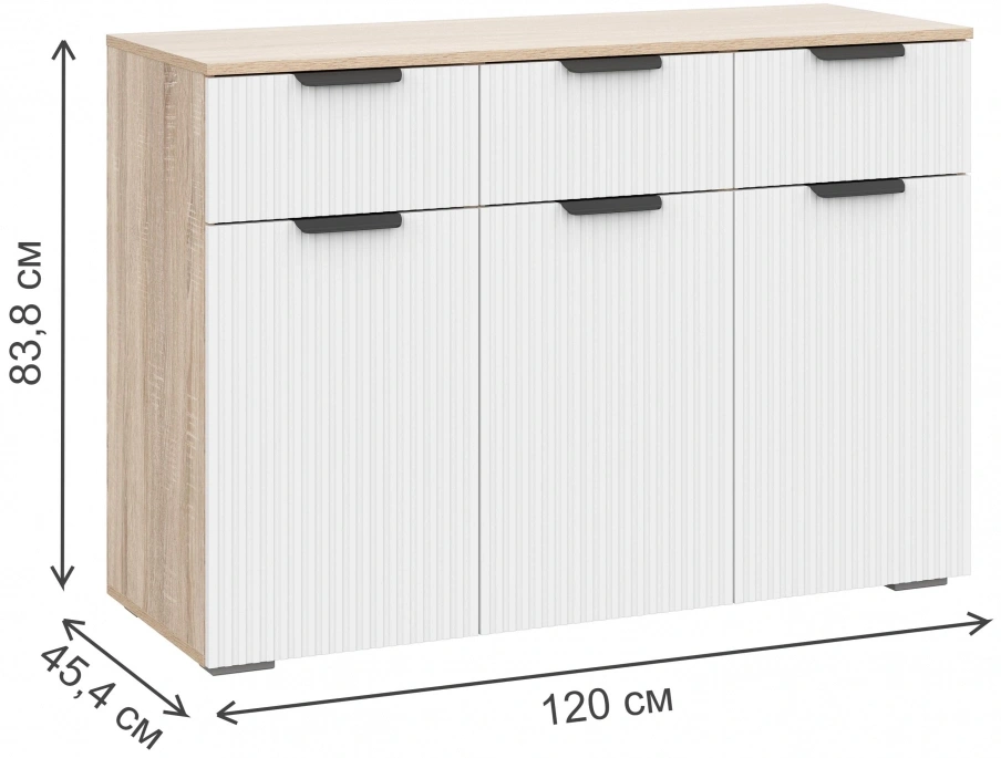 Комод Стокгольм КМ03-1200, дуб сонома / line софт пломбир