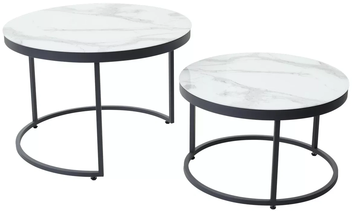 Комплект журнальных столиков Эрвин белый мрамор, стекло/ графит