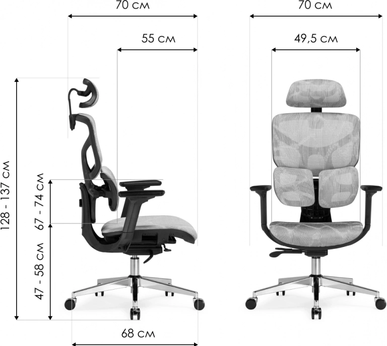 Спинка оснащена механизмом регулировки по высоте, управляемом при помощи кнопки, расположенной на задней части конструкции.