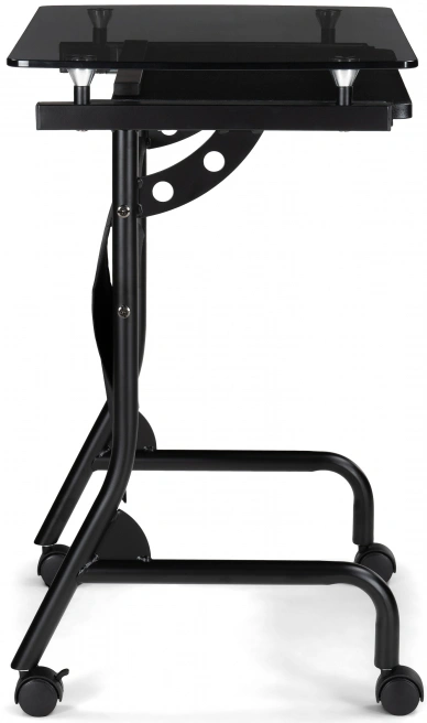 Материал каркаса - Металл; Материал ножек - Металл; Материал столешницы - Стекло; Цвет каркаса - Черный; Цвет ножек - Черный; Цвет столешницы - Черный; Цвет подстолья - Черный; Ширина - 40; Высота - 67; Длина - 54;