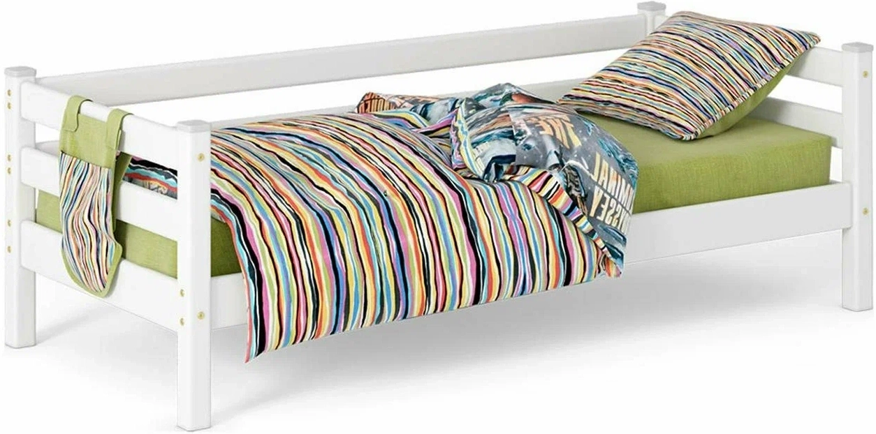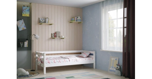 Вариант 2. Кровать "Соня" с задней защитой — один из примеров идеального сочетания практичности, оригинальности и долговечности. Цветовое исполнение подходит сразу для нескольких стилей, а габариты — для комнат разной площади. Мебель для детской создается из безопасных материалов с отличной износостойкостью.