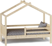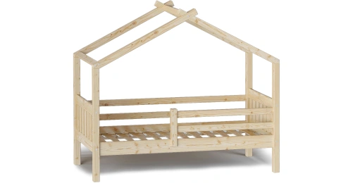 Каркас укомплектован основанием из поперечных гнутых ламелей. Головная и ножная спинки соединены стропилами, образующими крышу: если дополнить кроватку текстильными аксессуарами в виде балдахина и мягких бортиков, малыш будет ощущать себя в собственном уютном домике. В комплектацию кровати входит ортопедическое основание из гнутоклееных ламелей.
