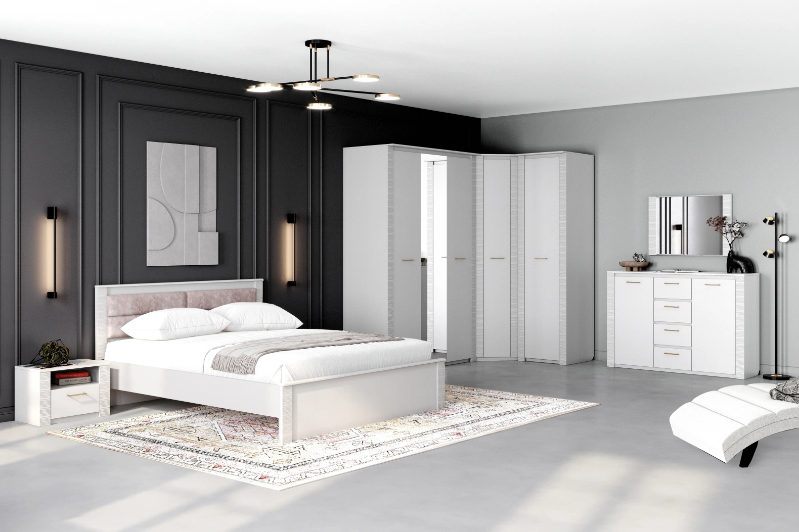 Серия мебели для спальни с нежным названием "Элана" такая же мягкая и романтичная. В ней воплощены самые актуальные тенденции мебельной индустрии, основой которых сегодня является акцент на мягкие, природные, естественные линии. Все это отражается в деталях коллекции: фрезерованные планки, подсветка, мягкие элементы кровати, - сделают Вашу спальню изысканной и необыкновенной.