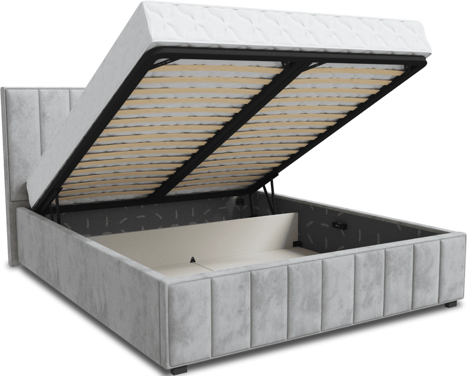 Интерьерная кровать из серии Кордова с подъемным механизмом и цельносварным ортопедическим основанием, а также настилом из ЛДСП для бельевого отсека.