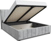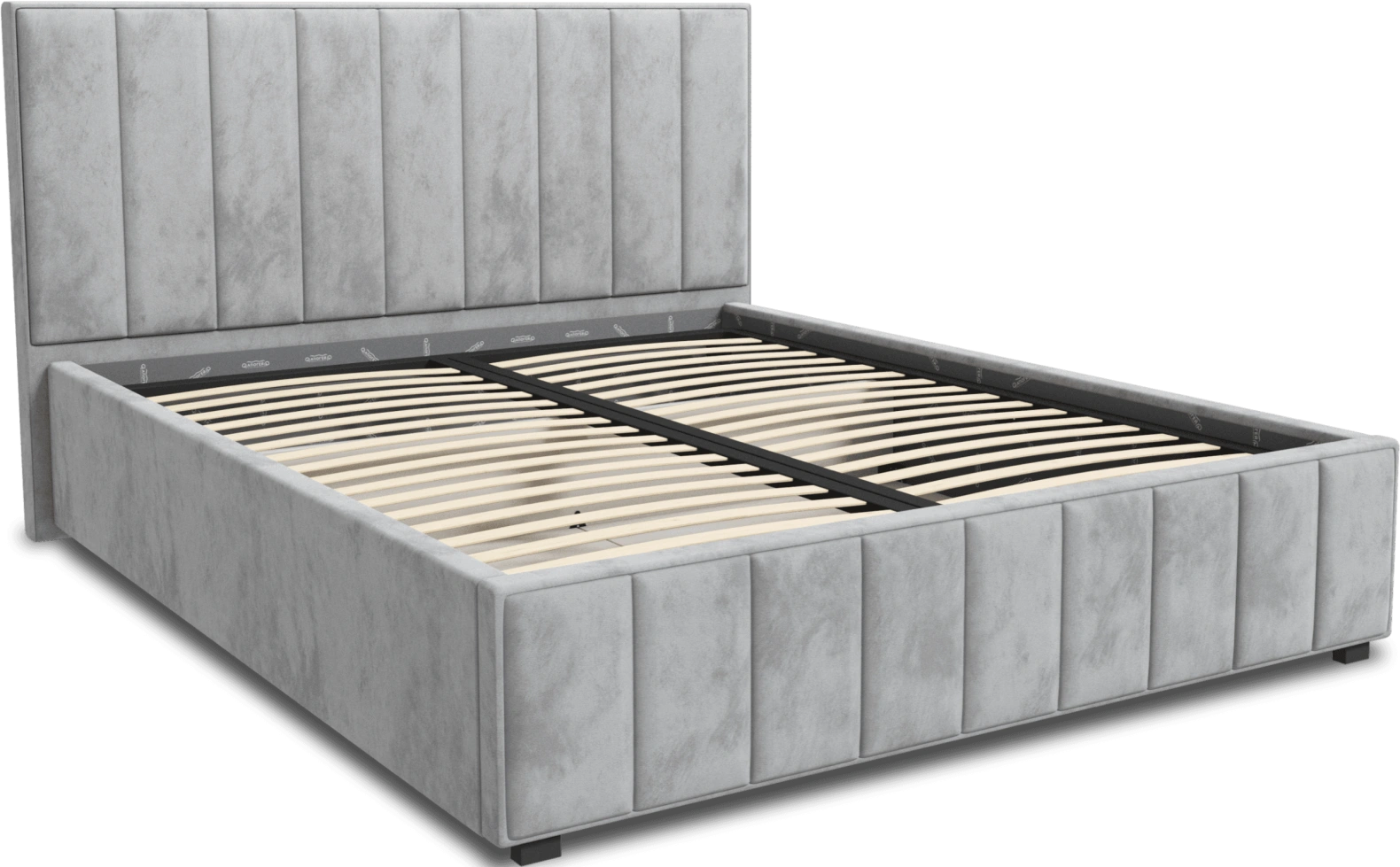 Интерьерная кровать из серии Кордова с подъемным механизмом и цельносварным ортопедическим основанием, а также настилом из ЛДСП для бельевого отсека.
